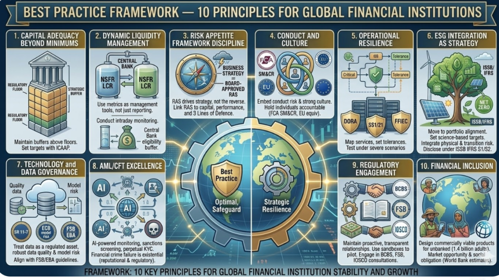 For financial professionals, the strategic imperative is clear: build institutions that are simultaneously capital-strong, operationally resilient, technologically sophisticated, and socially responsible. These are not trade-offs — they are the integrated attributes of the durable financial institution.